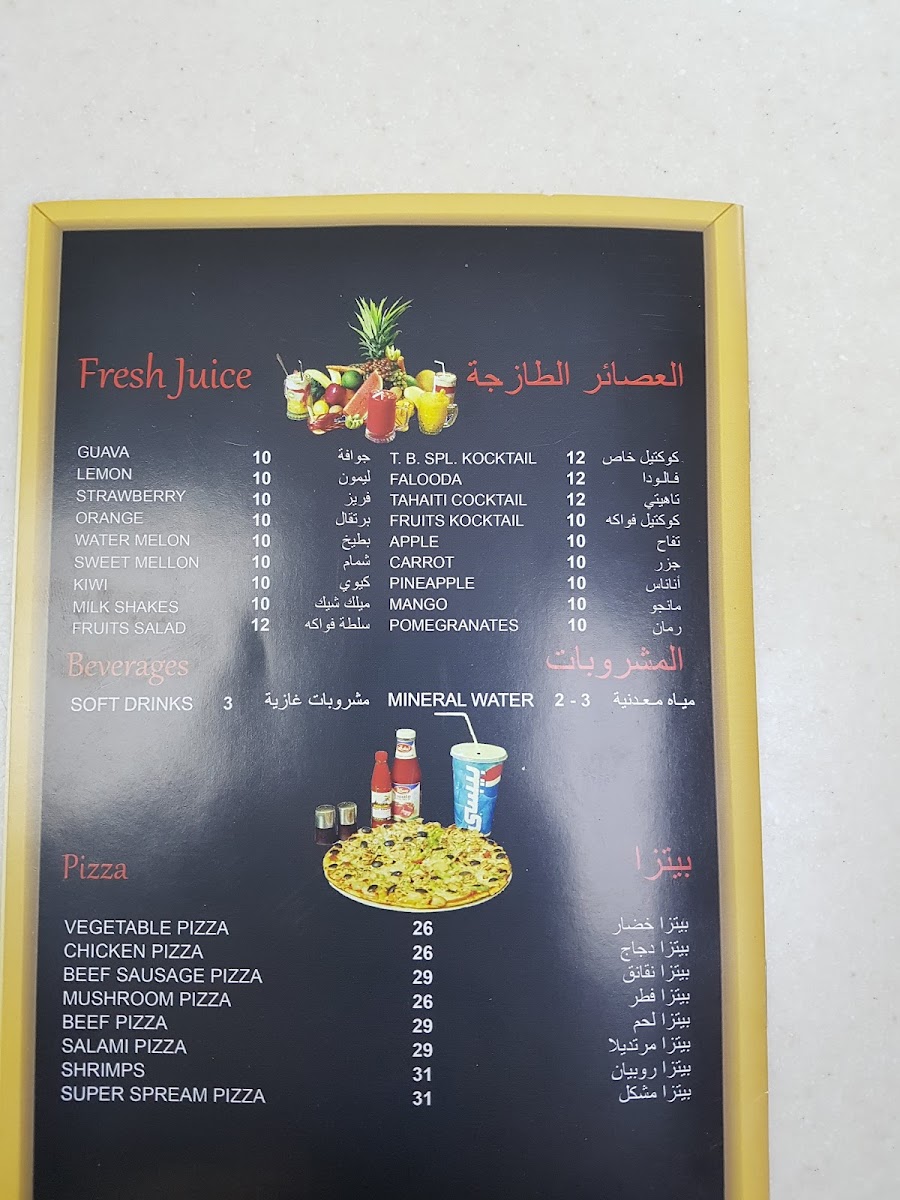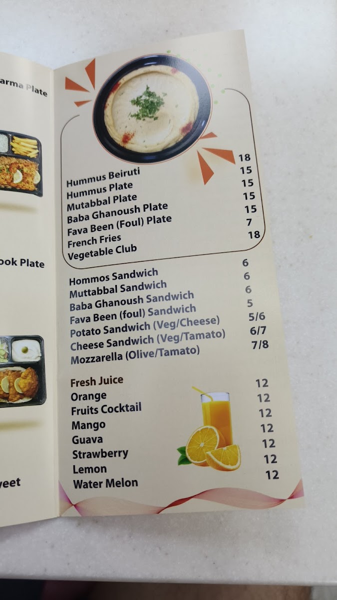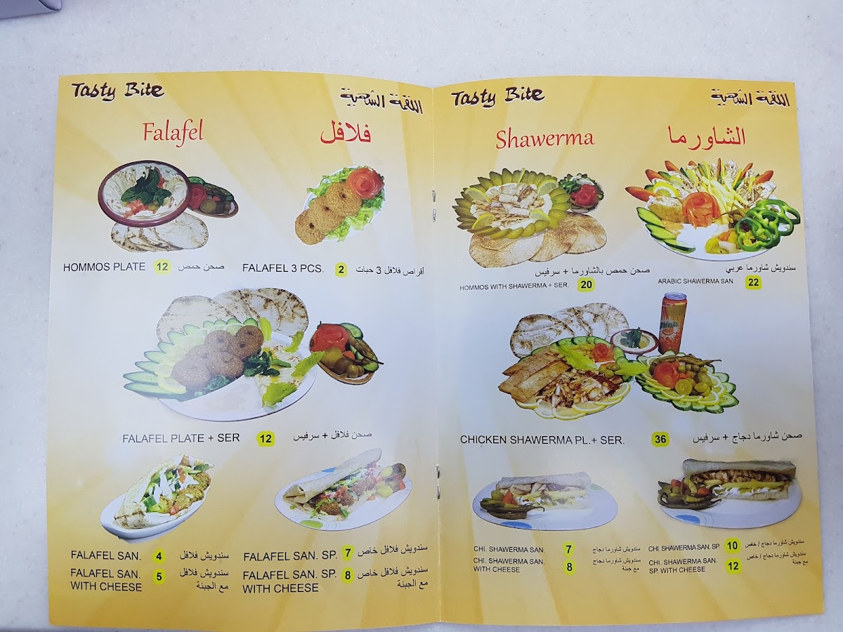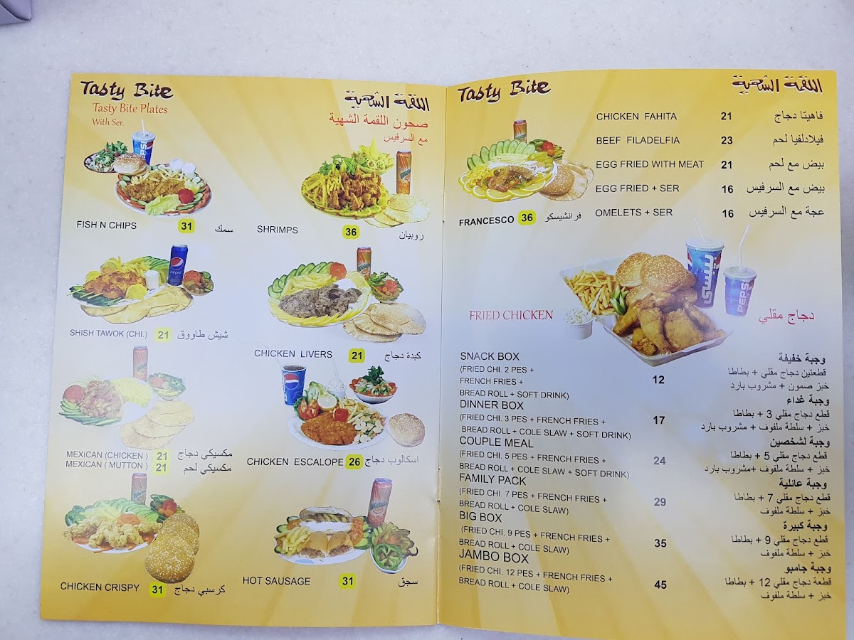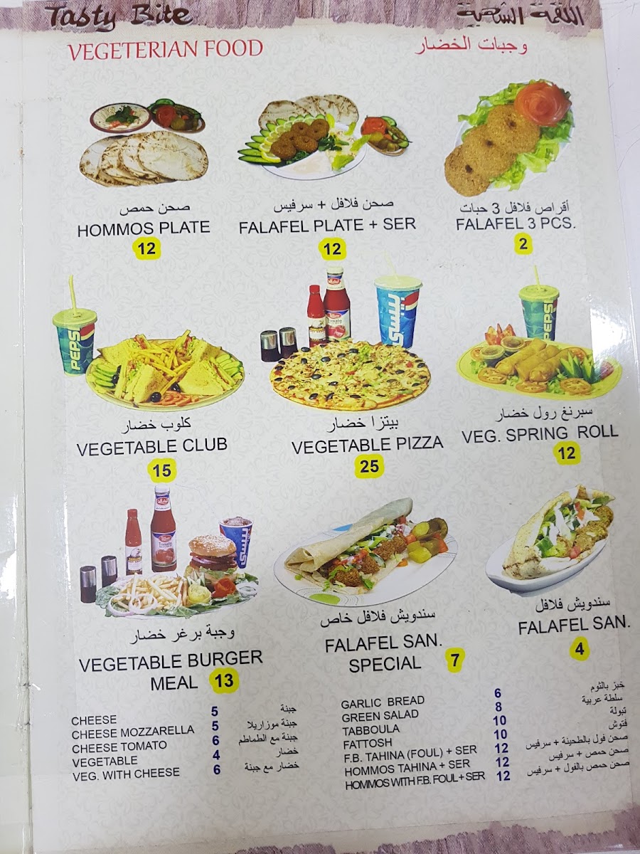 Tasty Bite Restaurant offers a delightful menu that brings the rich flavors of the Middle East and beyond to the heart of Dubai. The Falafel Plate stands out as a hearty and satisfying choice, with crispy falafels paired with fresh salad and pita bread. For a quick bite, the Falafel Sandwich is a crowd favorite, offering the perfect balance of crunch and flavor. The Falafels are expertly seasoned, making them a must-try for anyone seeking authentic Middle Eastern street food. Additionally, the Frices Chips and Chicken is a comforting dish, combining crispy fries and tender chicken for a filling meal. For pizza lovers, the Pizza on the menu provides a delicious option, with a perfect blend of toppings. The Humous Beiruti is another highlight, offering a fresh twist on the classic hummus with the addition of herbs and olive oil. For something sweet, the Sitaphal Cream is a unique dessert that delivers a creamy, flavorful finish to any meal. Lastly, the Arabic Shawerma San is a savory favorite, filled with tender meat and wrapped in soft pita, making it the ultimate comfort food. Whether you're in the mood for a light snack or a satisfying meal, Tasty Bite Restaurant's menu is sure to leave you craving more.